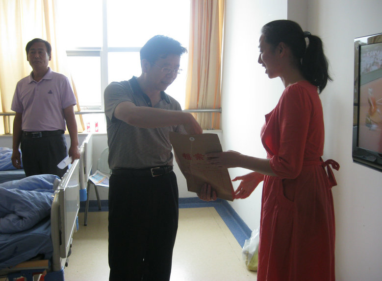 公司工會主席李應(yīng)濤到醫(yī)院看望病人并將愛心捐款如數(shù)交給患者家屬